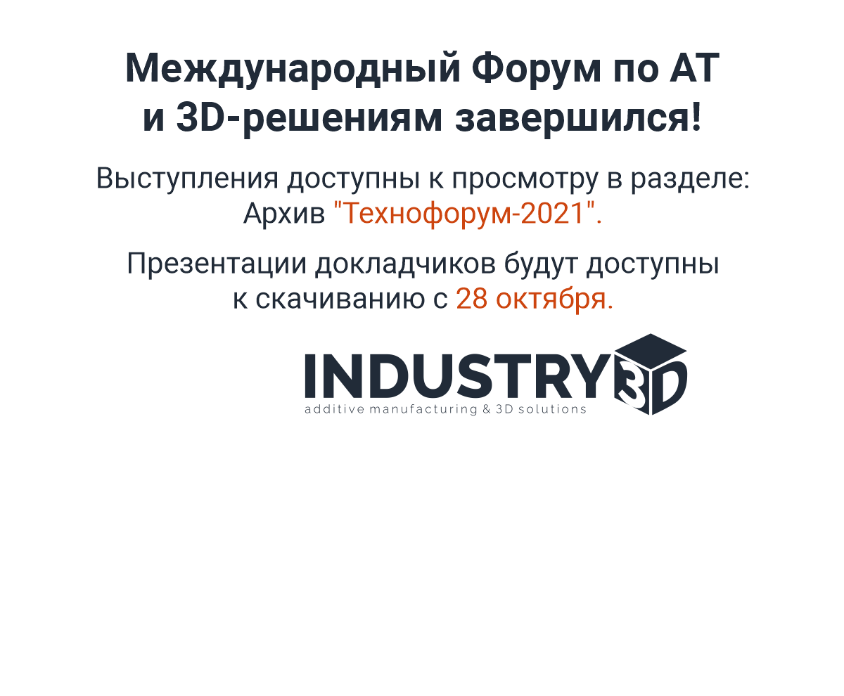 18-21 ОКТЯБРЯ | 11:00 | Международный форум по АТ и 3D-решениям в рамках выставки "ТЕХНОФОРУМ-2021"